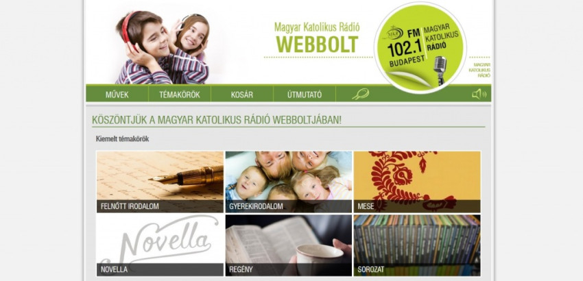 A Magyar Katolikus Rádió honlapján keresztül érhető el a webbolt, ahol a rádió a 2004-es indulása óta eltelt időben gyártott hanganyagait teszi mindenki számára hozzáférhetővé. A virtuális polcra hangjátékok, kortárs és klasszikus, magyar és külföldi irodalmi művek feldolgozásai, felolvasásai, valamint mesék kerülnek.