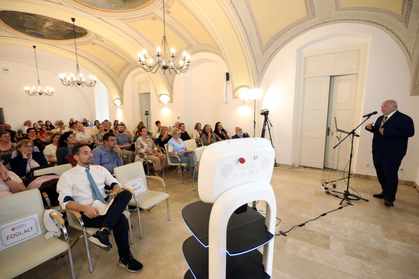 Ez utóbbira az előadás után példát is láthattak, amikor is Korondi Brúnó, az Enjoy Robotic Zrt. ügyvezetője beszélgetett egy több nyelven is kommunikálni képes, kijelzővel, szenzorokkal és mikrofonnal is felszerelt robottal.