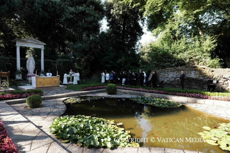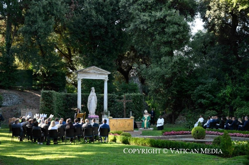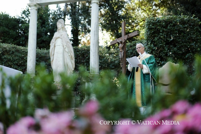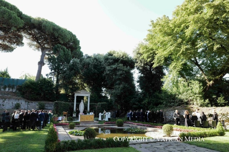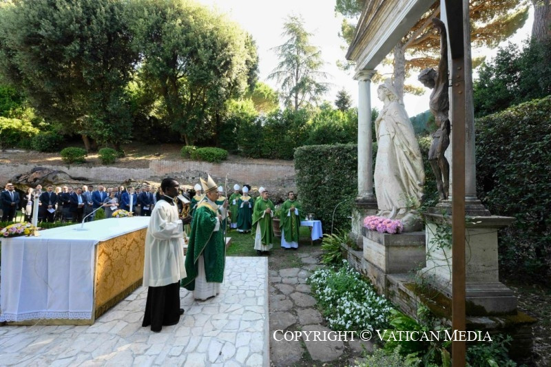 Én személyesen is szeretnék köszönetet mondani sok itt jelenlévőnek, akik e téren dolgoztak a liturgiáért. Mint tudjátok, a liturgia az életet képviseli, ti pedig ennek a Laudato si’ Központnak az élete vagytok. Szeretnék köszönetet mondani ebből az alkalomból mindazért, amit Ferenc pápa e csodálatos inspirációját követve tesztek, aki ezt a kis részt, ezeket a kerteket, ezeket a tereket éppen azért adta, hogy folytassuk azt az oly fontos küldetést mindannak tekintetében, amit tíz évvel a Laudato si’ közzététele után tudunk: a teremtett világ, közös otthonunk gondozásának szükségességéről van szó.