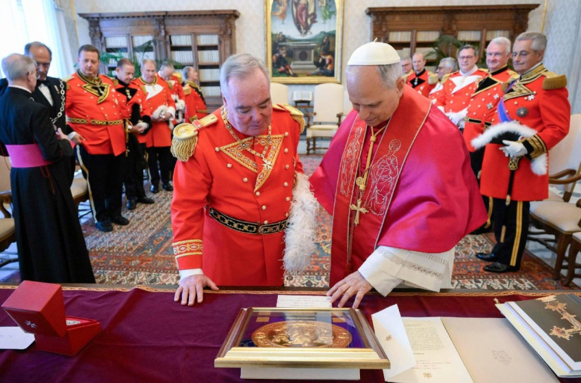 A nagymester egy ezüstérmet vitt ajándékba XIV. Leó pápának, amely a rend önkénteseinek a 2025-ös szentév iránti figyelemre méltó elkötelezettségét jelképezi. Jelenleg több mint kétezer önkéntes dolgozik a római pápai bazilikákban működő elsősegélynyújtó központokban; köztük a Szent Péter téren található elsősegélynyújtó állomáson, amely immár 75 éve az év minden napján nyitva áll a zarándokok előtt, kiemelt hangsúllyal a szerdai pápai audienciák és a szertartások idején.