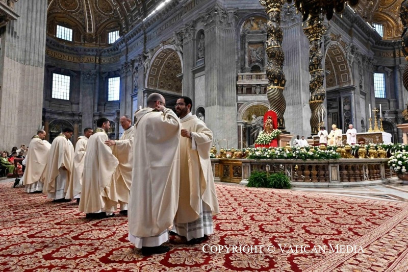 Ezzel a köszöntéssel különösen azokhoz fordulok, akiket most mutattak be, és papszentelésben fognak részesülni, családtagjaitokhoz, Róma papjaihoz – akik közül sokan húsvét negyedik vasárnapján saját szentelésükről is megemlékeznek –, és mindnyájatokhoz, akik jelen vagytok!