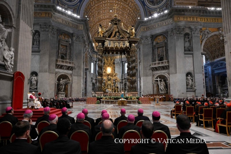 Kedves testvéreim, azzal az elhatározással térjünk haza, hogy mindig, lankadatlanul imádkozunk, és szívünk mély megtérésére törekszünk! Az Egyház a kiengesztelődés és a béke szolgálatában álló nagy nép, amely megingás nélkül halad előre, még akkor is, ha a háborús logika elutasítása meg nem értést és megvetést válthat is ki vele szemben. Az Egyház a béke evangéliumát hirdeti, és azt tanítja, hogy inkább Istennek engedelmeskedjünk, mint az embereknek, különösen akkor, amikor más emberek végtelen méltóságáról van szó, melyet a nemzetközi jog folyamatos megsértései fenyegetnek. „A világon mindenhol arra vágynak, hogy minden közösség a »béke otthona« legyen, ahol a párbeszéd révén az emberek megtanulják megelőzni az ellenségeskedést, ahol igazságosan élnek, és a megbocsátást gyakorolják. Ma különösen is szükséges megmutatni […], hogy a béke nem utópia” (Üzenet a béke 59. világnapjára, 2026. január 1.).