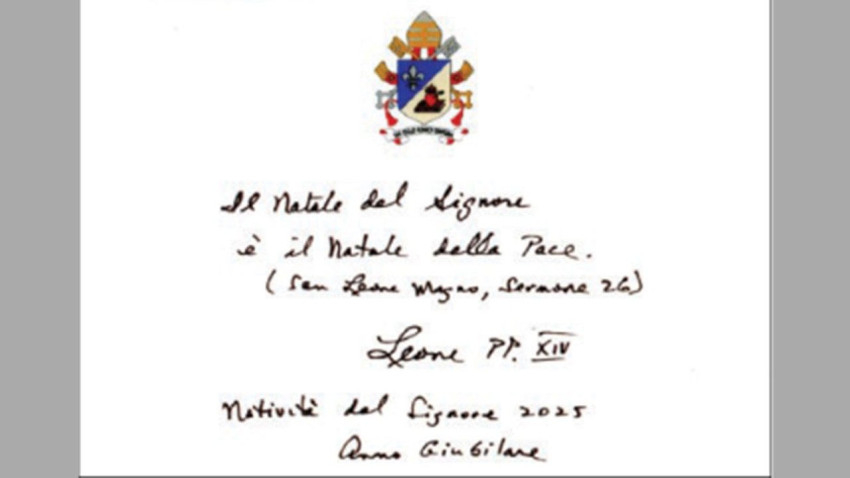 „Az Úr születése a béke születése.” Leó pápa ismét felidézi tanításának egyik fontos témáját az képeslapon, amit a Pápai Ház Prefektúrája készített, és amellyel pápaként első alkalommal fejezi ki üdvözletét az Úr születése alkalmából.