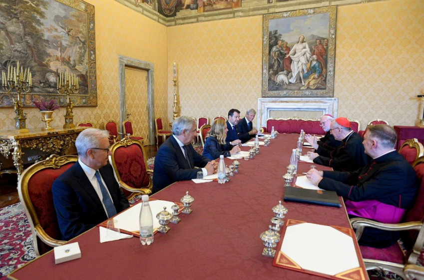 Ezúttal is Ukrajnáról egyeztetett az olasz kormányfő a pápai audiencia után a vatikáni Államtitkárságon Pietro Parolin bíboros államtitkárral és Paul Richard Gallagher érsekkel, a Szentszék államokkal és nemzetközi szervezetekkel fenntartott kapcsolatokért felelős titkárával. A szívélyes hangú találkozóról kiadott szentszéki közlemény arról tájékoztat, hogy a felek elégedetten állapították meg, hogy a Szentszék és Olaszország jó kapcsolatokat ápol. Kiemelték az ukrajnai és közel-keleti békéért tett közös erőfeszítéseket és a gázai humanitárius segítséget. Ezután a kétoldalú kapcsolatokat érintő kérdésekről, az Egyházat és az olasz társadalmat illető témákról cseréltek véleményt.
