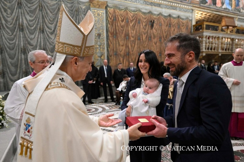 Ezt azonnal észreveszi Keresztelő János, aki így szól Jézushoz: „Neked kellene megkeresztelned engem, és te jössz hozzám?” (Mt 3,14). Íme, ez az a szentség, amelyet ma kiszolgáltatunk ezeknek a gyermekeknek: mivel Isten szereti őket, kereszténnyé válnak, testvéreinkké Krisztusban.