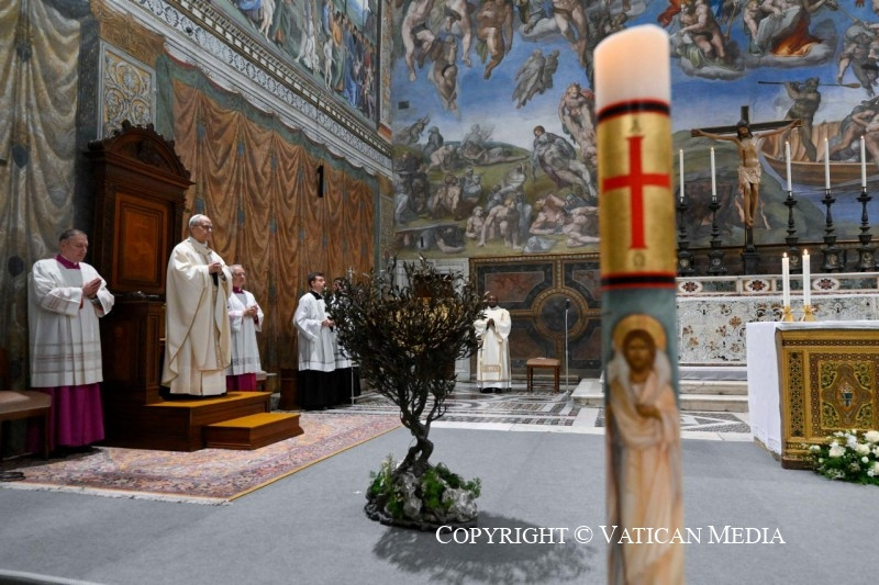 A gesztusok, melyeket rövidesen végzünk, ennek gyönyörű tanúságai: a keresztelőkút vize a Lélekben való fürdő, mely minden bűntől megtisztít; a fehér ruha az új öltözet, melyet a mennyei Atya ajándékoz nekünk országának örök ünnepére; a húsvéti gyertyáról meggyújtott gyertya a feltámadt Krisztus világossága, mely megvilágítja utunkat.