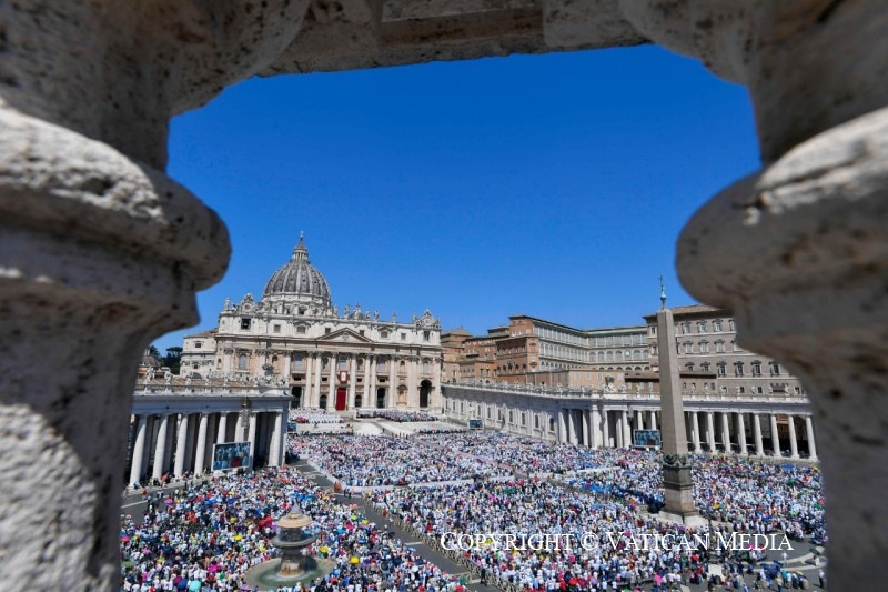 Igaz, néha ezt az emberséget elárulják. Például, amikor nem azért hivatkoznak a szabadságra, hogy életet adjanak, hanem hogy azt elvegyék, nem azért, hogy támogassák, hanem hogy ártsanak neki. Jézus azonban – a gonoszsággal szemben is, mely szembehelyezkedik és öl – továbbra is imádkozik értünk az Atyához, és imája balzsamként hat sebeinkre, a megbocsátás és a kiengesztelődés meghirdetésévé válik mindenki számára. Az Úrnak ez az imája teljes értelmet ad azoknak a ragyogó pillanatoknak, amikor – szülőként, nagyszülőként, gyermekként – szeretjük egymást. És ezt akarjuk hirdetni a világnak: azért vagyunk itt, hogy „egyek” legyünk, ahogy az Úr azt akarja, hogy „egyek” legyünk, családjainkban és bárhol élünk, dolgozunk és tanulunk: különbözőek, mégis egyek, sokan, mégis egyek, mindig, minden körülmények között, minden életszakaszban.