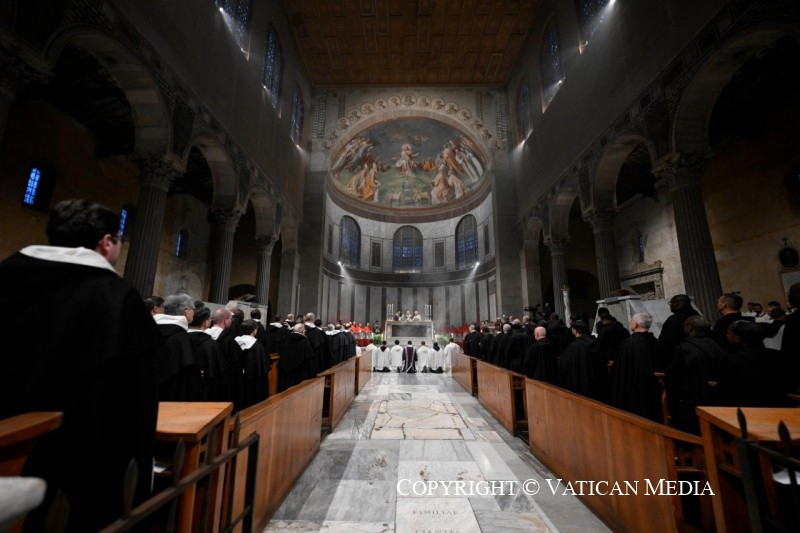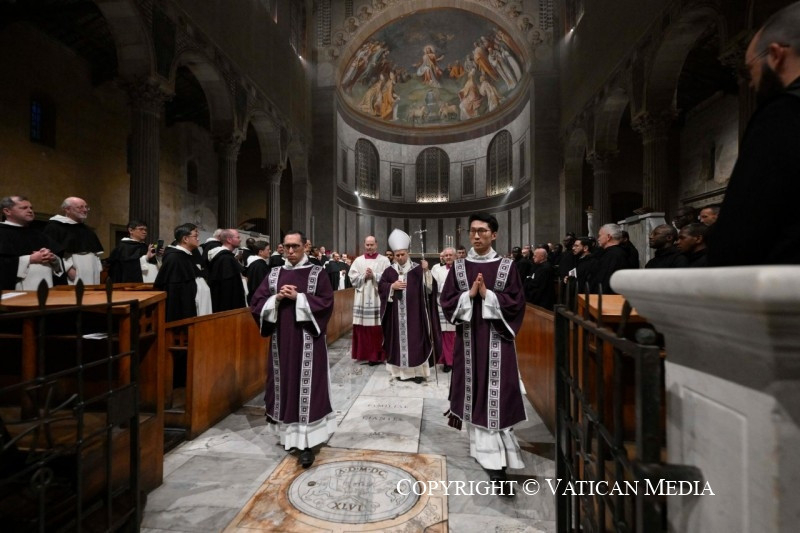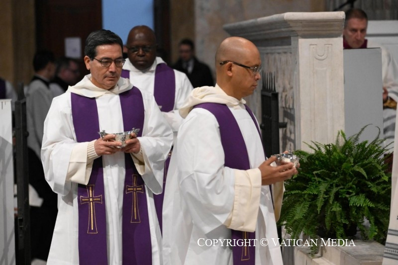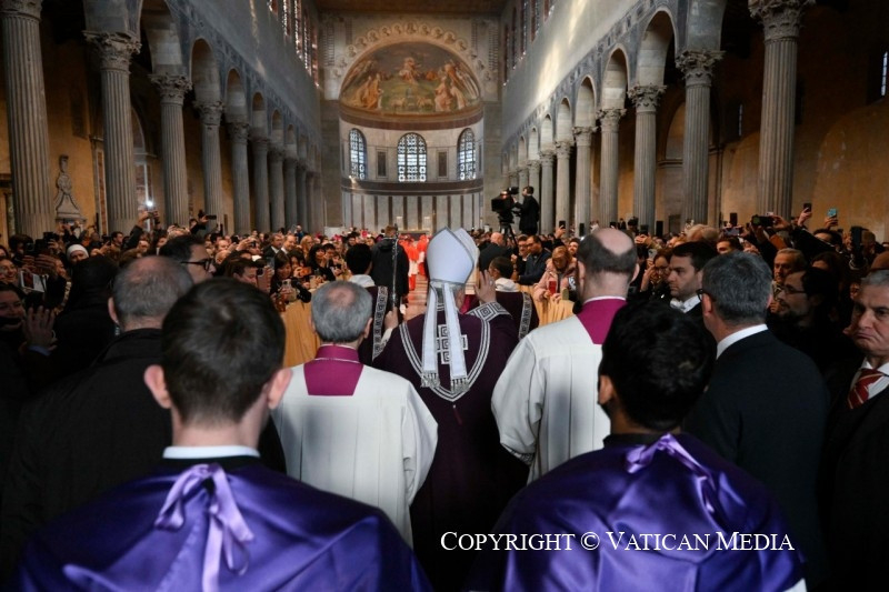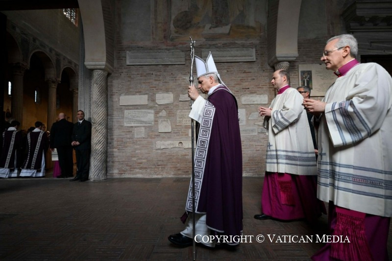A körmeneten bíborosok, érsekek, püspökök, a Sant’Anselmo bencés szerzetesei, a Santa Sabina domonkos atyái és hívők vettek részt. A Santa Sabina-bazilikában XIV. Leó pápa vezette az eucharisztikus ünneplést a hamu megáldásának és a hamvazásnak a szertartásával.