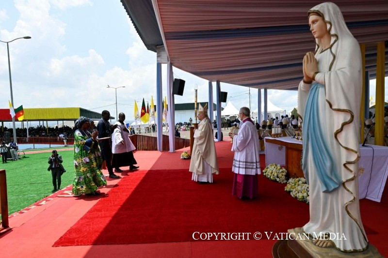 Az evangélium, melyet hallottunk (Jn 6,1–15), az egész emberiség számára az üdvösség igéje. Ma mindenütt ezt az örömhírt hirdetik, mely a kameruni egyház számára Isten szeretetének és a köztünk lévő közösségnek gondviselésszerű hirdetéseként hangzik fel.