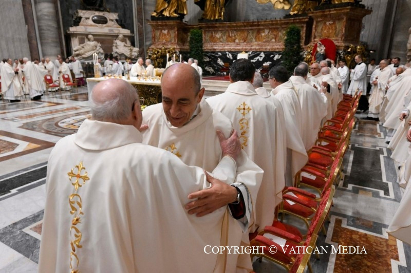 Kedves testvéreim, mindaz, amit szolgálatotokkal – bármely szinten – az Egyháznak adtok, nagy jelentőségű, rendkívül személyes és mély valóság: számotokra egyedi, és mindenki számára értékes. Súlyos a felelősség, melyet Péter utódával együtt viseltek.