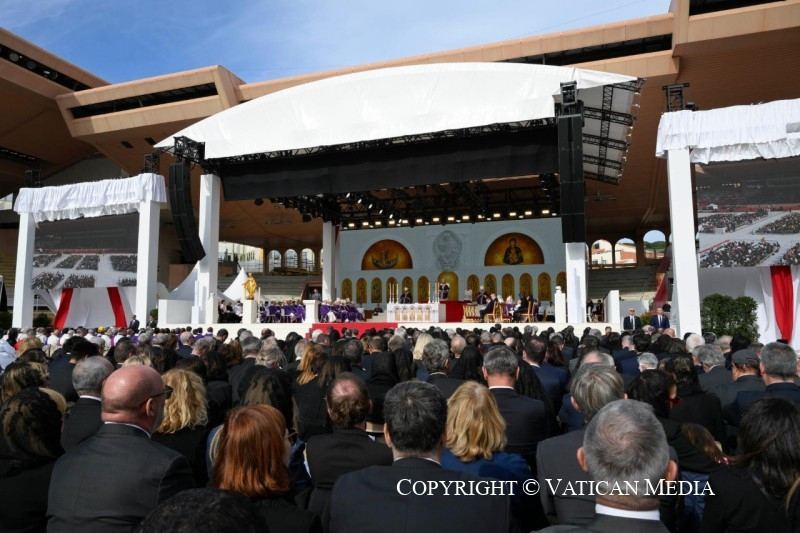 Ezért, kedves testvéreim, a népeket sebző sok igazságtalanság és a nemzeteket pusztító háborúk közepette állandóan felhangzik Jeremiás próféta szava, amelyet ma zsoltárként imádkoztunk: „Gyászukat örömre fordítom, megvigasztalom őket, s örömet szerzek nekik fájdalmuk után” (Jer 31,13). Az embereket más emberek rabszolgáivá tevő bálványimádástól való megtisztulás megszentelődéssé válik: kegyelmi ajándékká, amely Isten gyermekeivé és egymás testvéreivé teszi az embereket. Ez az ajándék megvilágítja jelenünket, mert