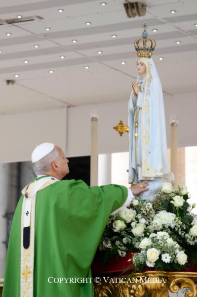 Szeretteim, ebben az igazságosságra és békére szomjazó világban tartsuk elevenen a keresztény lelkiséget, a népi jámborságot azok iránt az események és helyek iránt, amelyeket Isten megáldott, és amelyek örökre megváltoztatták a föld arculatát. Tegyük a megújulás és az átalakulás motorjává, ahogyan azt a jubileum kéri: a megtérés és a visszaszolgáltatás, az újragondolás és a felszabadítás idejévé. Járjon közben értünk a Boldogságos Szűz Mária, a mi reményünk, és mindig – újra meg újra – Jézus felé, a megfeszített Úr felé irányítson bennünket! Benne van üdvösség mindenki számára.