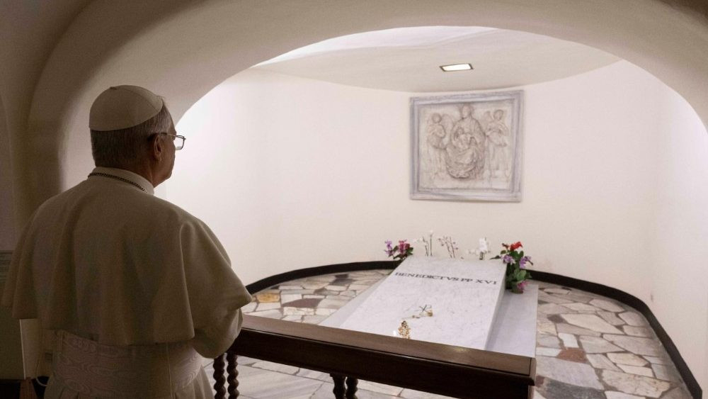 A mise után a pápa elődjeinek sírjánál és az úgynevezett Pallium fülke előtt imádkozott. Beszédében hivatások ébresztésére, párbeszédre, az Úr szavának hallgatására biztatott.