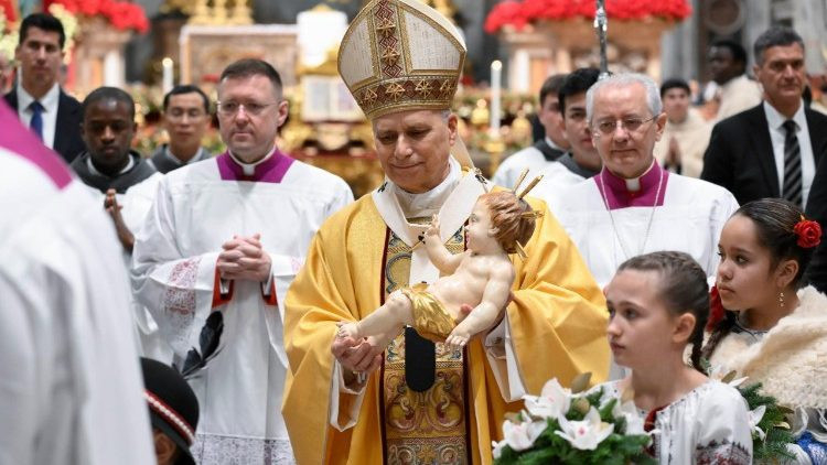A szentmise záróaldását követően Szentatya kezébe vette a jászolból a gyermek Jézust, akit a Föld öt kontinenséról érkezett gyermekek kiséretében a Szent Péter-bazilikában felállított betlehemhez vittek, ahol elhelyezték a Megváltót.