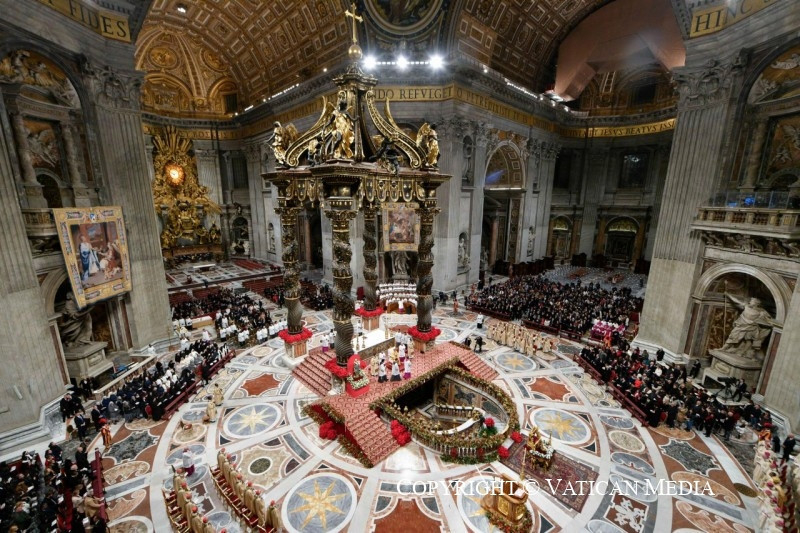 A Szent Péter-bazilika megtelt ünneplő hívekkel. A szentmise előtt a bazilikában imádságos virrasztással kezdődött a liturgia. A lektor a Jézus megtestesülését meghirdető próféciák közül hármat olvasott fel: a Teremtés könyvéből (49,2. 8. 10), Izajás prófétától (11,1–4a) és Szofoniás prófétától (3,14–15). Az egyes szentírási részek után a kórus és a jelenlévők együtt énekelték: „Regem venturum Dominum, venite, adoremus azaz Az Úr királyként érkezik, jöjjetek imádjuk!” Majd a Megváltó hívása történt, melyet a lektor és a hívek könyörgésekben fogalmaztak meg.
