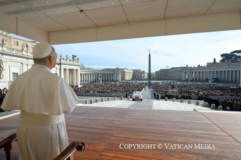 Olasz nyelvű beszédének témája: A Lumen gentium dogmatikus konstitúció – Az Egyház misztériuma, az Istennel való egyesülésnek és az egész emberi nem egységének szentsége. A Szentatya több nyelven is összefoglalta katekézisét, majd üdvözölte a jelen lévő hívőket. Az általános kihallgatás a Miatyánk elimádkozásával és az apostoli áldással zárult.