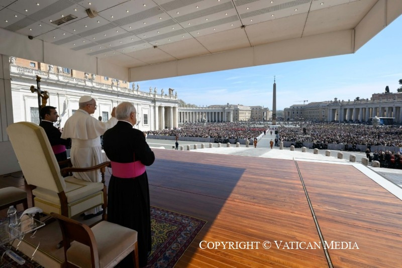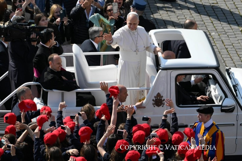 Mai beszédének témája: A Lumen gentium dogmatikus konstitúció – Az apostolok alapjára épülve. Az Egyház a maga hierarchikus dimenziójában. A Szentatya több nyelven is összefoglalta katekézisét, majd üdvözölte a jelen lévő hívőket. Az általános kihallgatás a Miatyánk elimádkozásával és az apostoli áldással zárult.