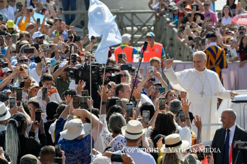 A Szentatya más nyelveken is összefoglalta katekézisét, üdvözölte a jelen lévő híveket, és megemlékezett a Hirosima és Nagaszaki ellen elkövetett atomtámadás nyolcvanadik évfordulójáról. Az általános kihallgatás a Miatyánk elimádkozásával és apostoli áldással zárult. Az alábbiakban XIV. Leó pápa teljes katekézisének fordítását közreadjuk.