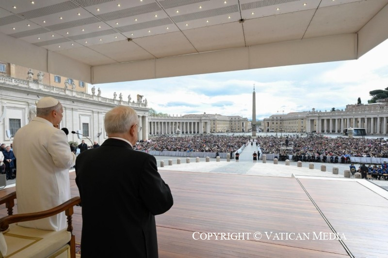 Mai beszédének témája: A Lumen gentium dogmatikus konstitúció – Élő kövek az Egyházban és tanúk a világban: a világi hívők Isten népében. A Szentatya több nyelven is összefoglalta katekézisét, majd üdvözölte a jelen lévő hívőket. Az általános kihallgatás a Miatyánk elimádkozásával és az apostoli áldással zárult.