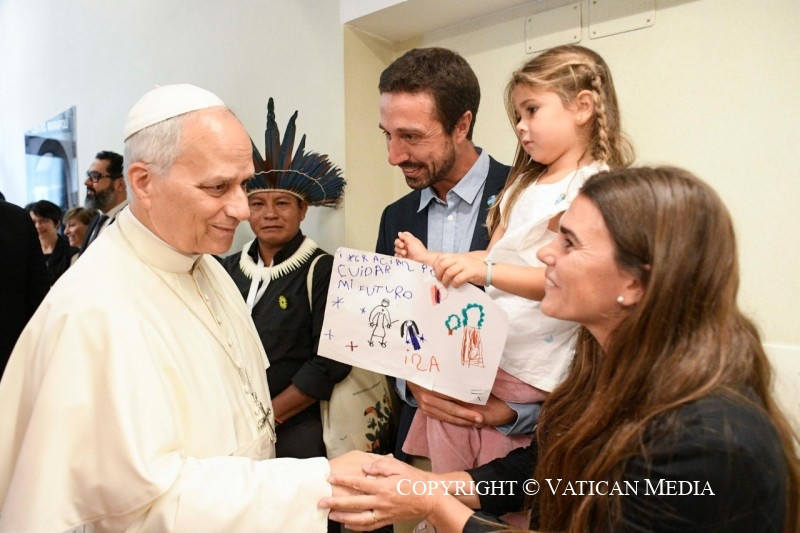 Kívánom, hogy a következő nemzetközi csúcstalálkozók – gondolok itt az ENSZ harmincadik éghajlatváltozási konferenciájára (COP30), a FAO Világélelmezés-biztonsági Bizottságának ülésére és az ENSZ 2026-ra tervezett vízügyi csúcstalálkozójára – meghallják a föld és a szegények kiáltását, a családok, az őslakos népek, az otthonukat elhagyni kényszerültek és a világ valamennyi hívőjének kiáltását. Ugyanakkor bátorítok mindenkit – különösen a fiatalokat, a szülőket, valamint a helyi és nemzeti közigazgatásban és intézményekben dolgozókat –, hogy járuljanak hozzá a „kulturális, spirituális és nevelési feladat” (Laudato si’, 202) megoldásához, mindig következetesen a közjóra törekedve.