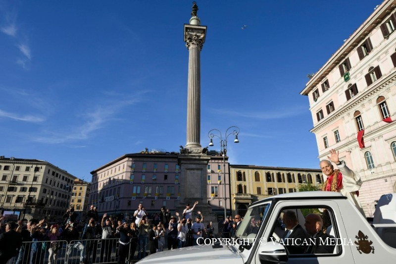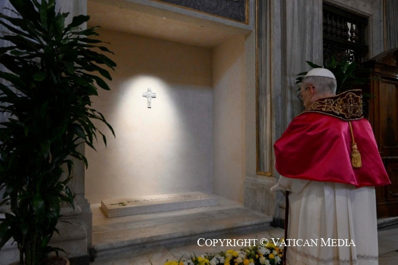 A záróáldás után imádkozott Ferenc pápa sírjánál. Azt követően pedig a bazilika központi erkélyéről köszöntötte és megáldotta a templom előtti téren összegyűlt híveket.