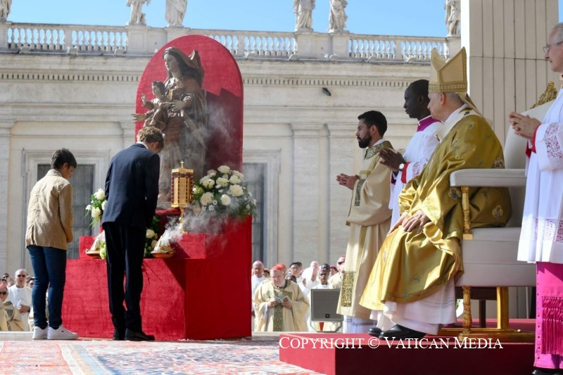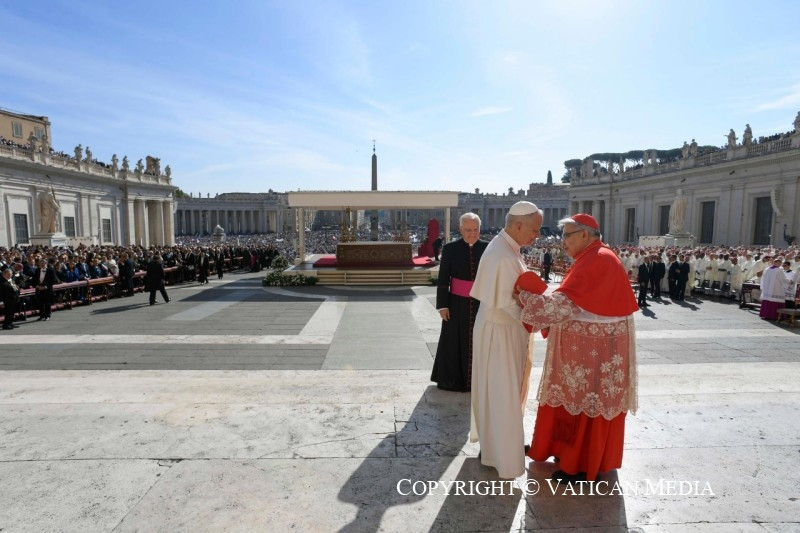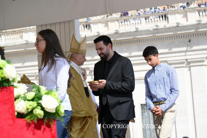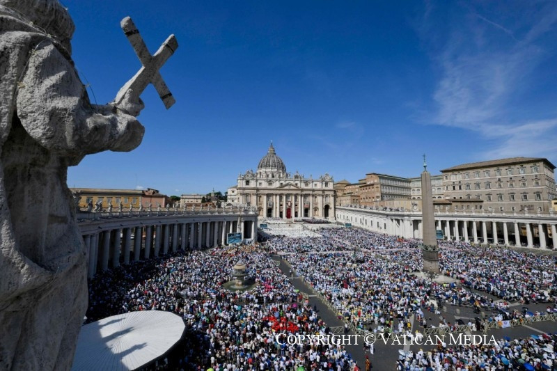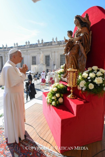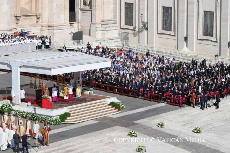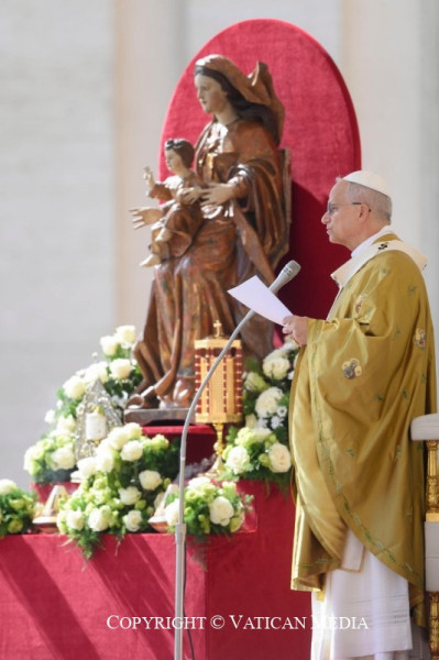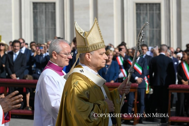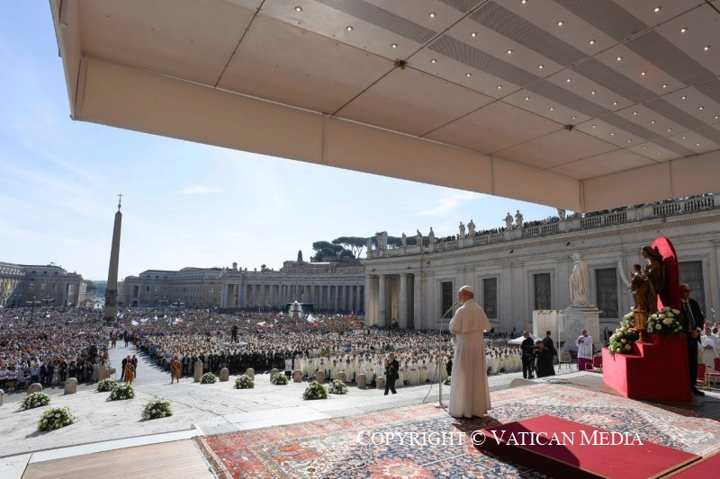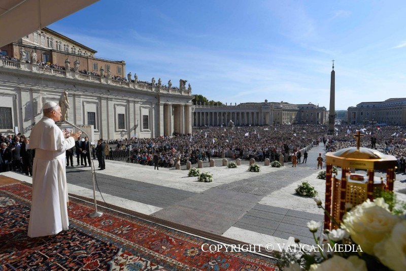 Testvéreim, csodálatos ünnepnap ez egész Olaszország, az egész Egyház, az egész világ számára! Mielőtt elkezdenénk a szentté avatás ünnepélyes szertartását, szeretnélek üdvözölni mindnyájatokat, szeretnék szólni néhány szót mindnyájatokhoz, mert bár ez a szertartás nagyon komoly, ugyanakkor ez egy nagyon örömteli nap is! Szeretném külön is üdvözölni a sok fiatalt, gyermeket, akik eljöttek erre a szentmisére! Igazán az Úr áldása, hogy veletek lehetünk, akik különféle országokból jöttetek. Ez valóban a hit ajándéka, melyet meg akarunk osztani.