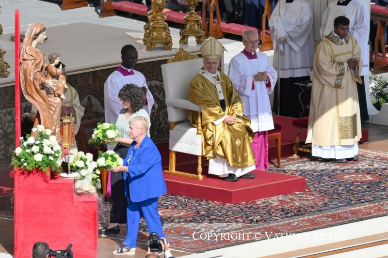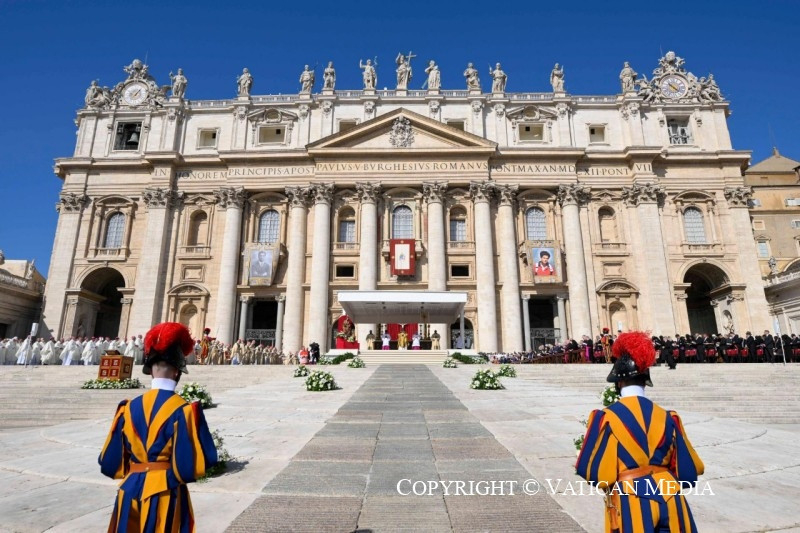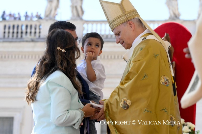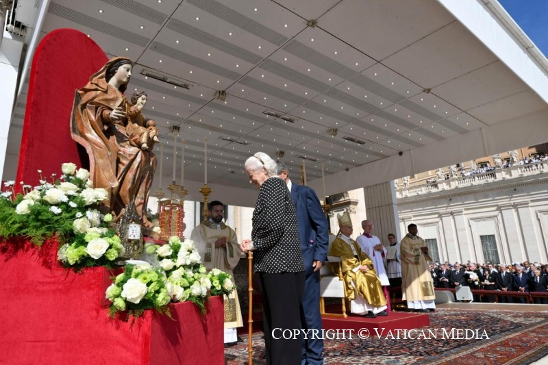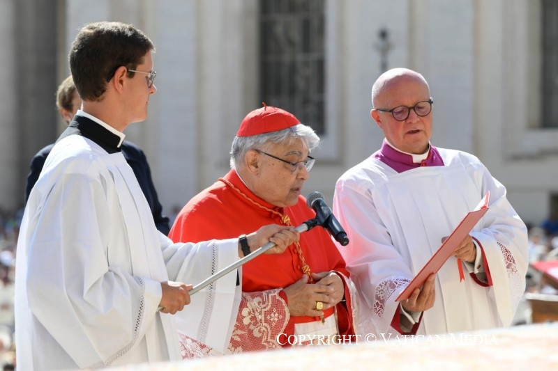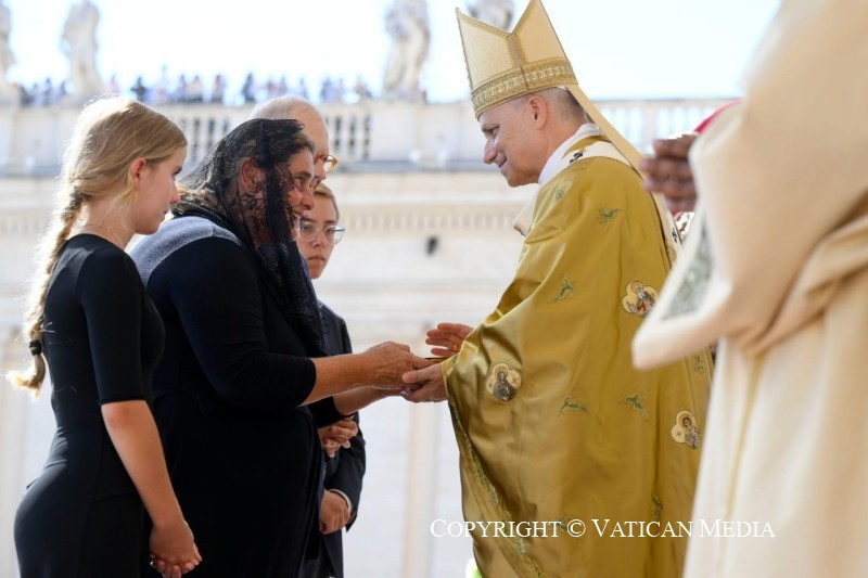Köszöntöm a két boldognak – majdnem szentnek – a családtagjait, a hivatalos küldöttségeket, a sok püspököt és papot. Tapsoljuk meg mindannyiukat, köszönjük nektek is, hogy itt vagytok! Szerzetesek és szerzetesnők, a Katolikus Akció!