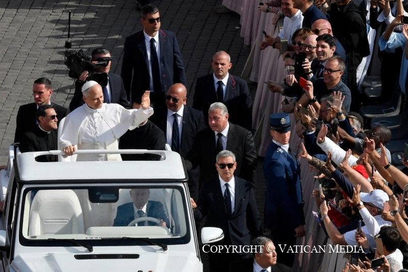 A pápamobil reggel 9 óra tájt indult el, és egy nagyobb kört megtéve érkezett meg a Szent Péter térre, ahol 10 órakor kezdődött el az ünnepélyes szentmise, mellyel XIV. Leó pápa hivatalosan megkezdte péteri szolgálatát.