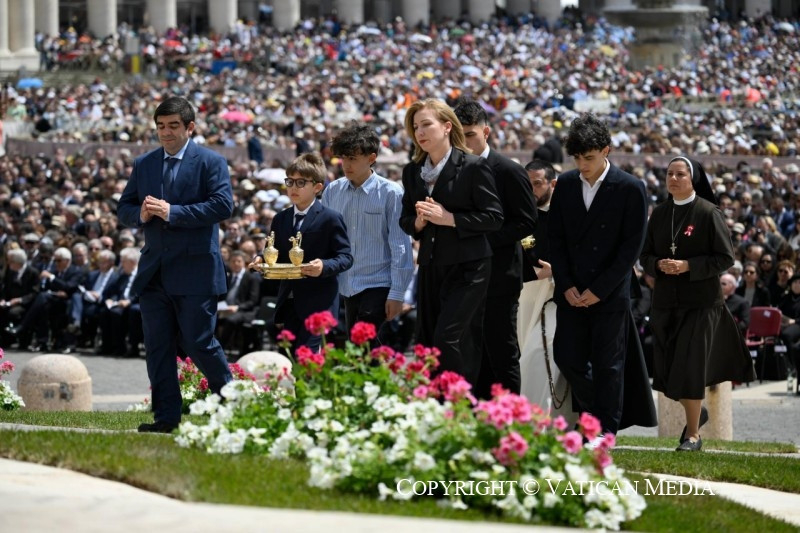 Az Ad multos annos! köszöntés után Isten népe – a különböző világrészek és életállapotok – képviseletében hűséget fogadtak az új pápának, aki ezután mondta el az alább – Török Csaba fordításában – teljes egészében olvasható homíliáját.