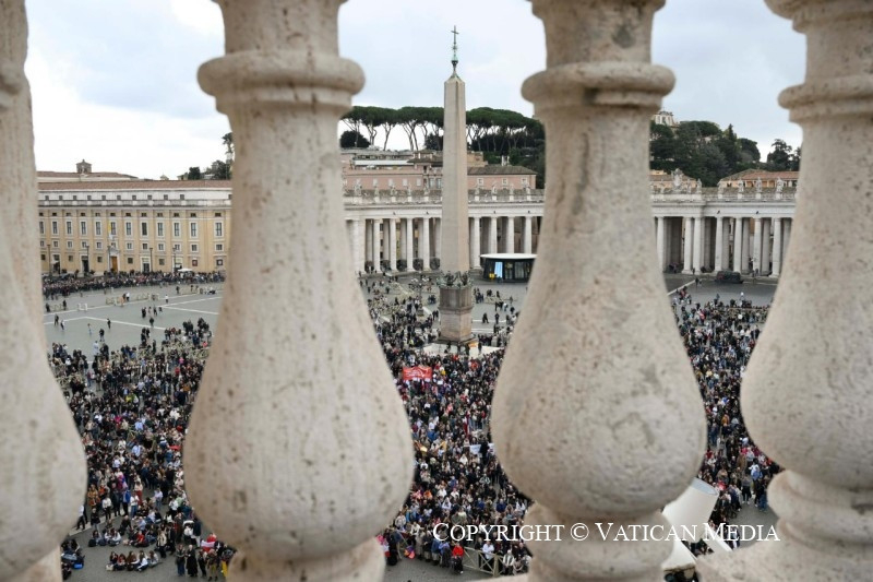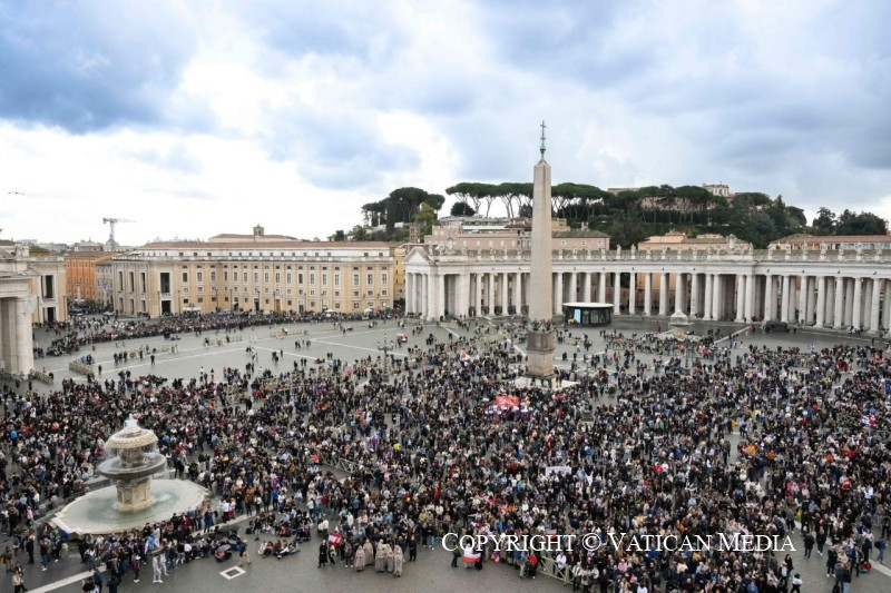 Most pedig köszöntelek mindnyájatokat, rómaiak, Olaszországból és más országokból érkezett zarándokok. Köszöntöm a spanyolországi Melilla, Murcia és Málaga híveit; a Fehéroroszországból, Litvániából és Lettországból érkezett hívőket; a spanyolországi Olivenzából érkezett diákokat és a máltai bérmálkozó fiatalokat.