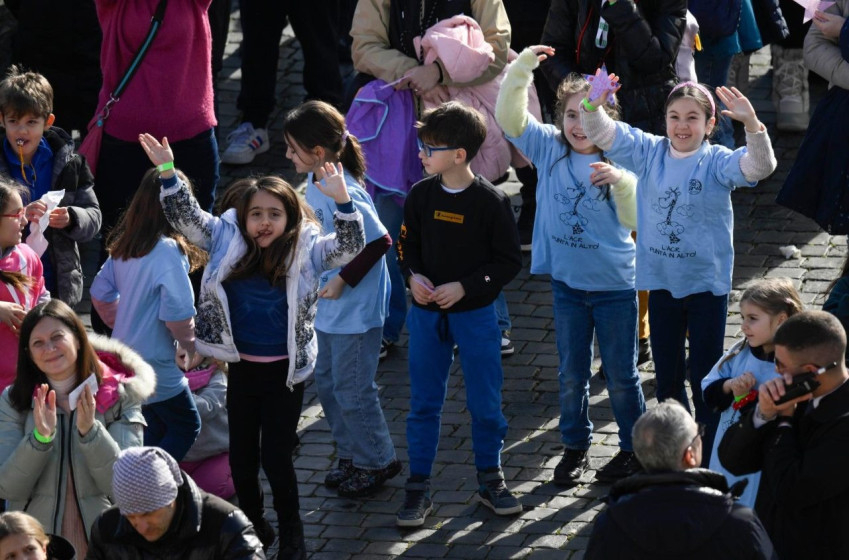 Szeretettel köszöntöm a római Katolikus Akció fiataljait – szüleikkel, nevelőikkel és papjaikkal együtt –, akik életre hívták a békekaravánt. Kedves gyermekek és fiatalok, köszönöm nektek, hogy segítetek nekünk, felnőtteknek egy másik nézőpontból tekinteni a világra: az egymástól különböző emberek és népek közötti együttműködés szemszögéből. Köszönöm! Legyetek a béke munkálói otthon, az iskolában, a sportban, mindenütt! Soha ne legyetek erőszakosak, sem szavakkal, sem tettekkel! Soha! A rosszat csak a jóval lehet legyőzni.