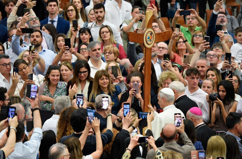 A Szentlélek, aki hatalommal száll alá az első közösségre, ugyanaz a Lélek, akit Jézus az utolsó leheletével nekünk adott (vö. Jn19,30). Ez a bibliai ikon elválaszthatatlan az elsőtől: az Egyház termékenysége mindig ahhoz a kegyelemhez kapcsolódik, amely Jézus átszúrt szívéből áradt ki a vérrel és a vízzel, a szentségek jelképével együtt (vö. Jn19,34).