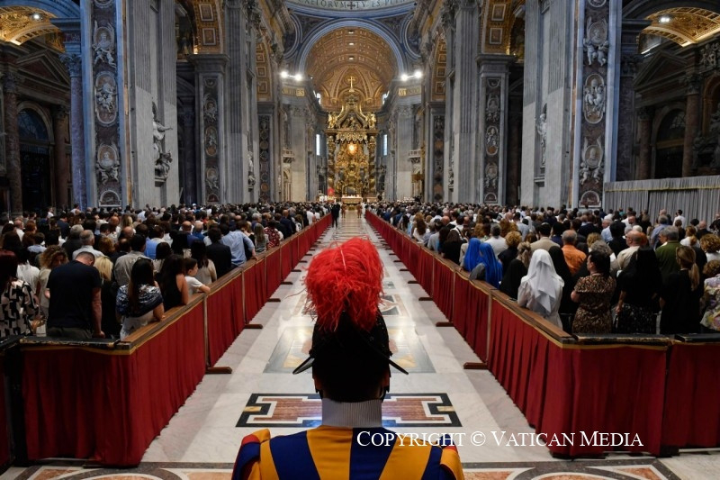 Ma abban az örömben és kegyelemben van részünk, hogy a Szentszék jubileumát Máriának, az Egyház anyjának liturgikus emléknapján ünnepelhetjük. Ez a szerencsés egybeesés világosságnak és belső inspirációnak a forrása a Szentlélekben, aki tegnap, pünkösdkor bőségesen kiáradt Isten népére. Mi pedig ebben a spirituális légkörben egy különleges napnak örülhetünk, először az elmélkedéssel, melyet meghallgattunk, most pedig itt, az ige és az eucharisztia asztalánál.