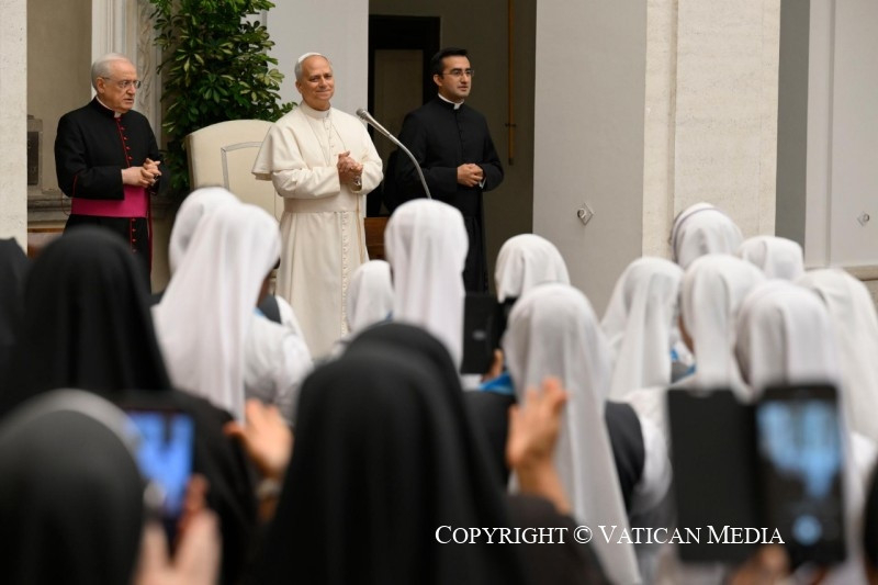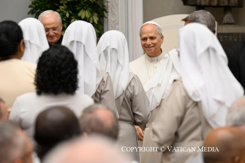 Kérjük az Úrtól, hogy engedelmesek legyünk a Lélek szavának, mely megtanít mindenre, mert a segítsége nélkül gyöngeségünkben azt sem tudjuk, hogy imádkozzunk – fohászkodott Leó pápa, majd szívből jövő áldását adta a szerzetesekre és imáiról biztosította őket. Az audiencia végén együtt elimádkozták a Miatyánkot.