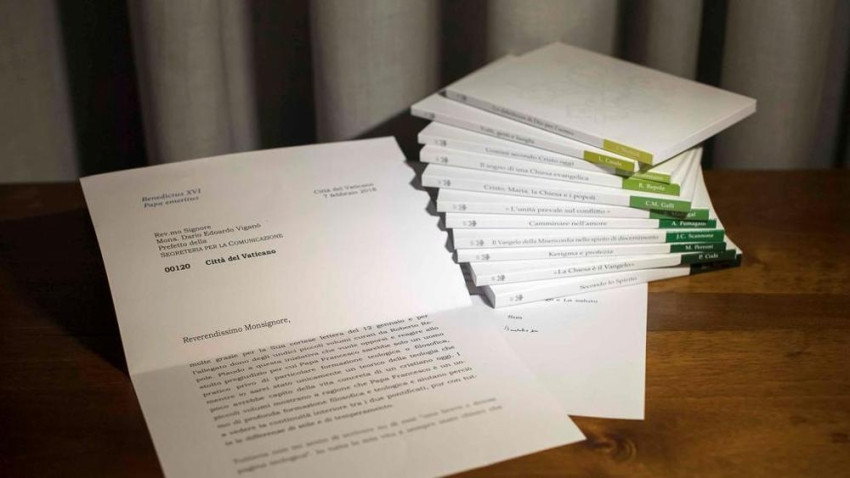Ratzinger köszönetet mond, amiért megkapta ajándékba a tizenegy, nemzetközi hírű teológus által írt tizenegy kötetet, a Roberto Repole, az Olasz Teológiai Társaság elnöke által szerkesztett sorozat darabjait. „Ezek a kis kötetek – teszi hozzá XVI: Benedek – joggal mutatnak rá arra, hogy Ferenc pápa alapos filozófiai és teológiai műveltséggel rendelkező ember, és így segítenek meglátni a két pápaság közötti, minden stílus- és vérmérsékletbeli különbség ellenére meglévő belső folyamatosságot.”