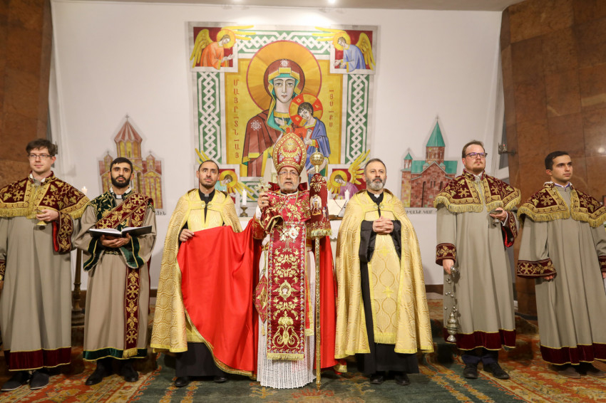A december 21-i budapesti pátriárkai Szent Liturgia óörmény nyelven folyt. Az evangéliumot Fülöp Ákos plébániai kormányzó olvasta fel magyarul, Krikor Badichah, a római Pápai Örmény Kollégium rektorhelyettese, az Orlay utcai közösség régi barátja pedig örményül. Az örmény nyelvű beszédeket Garaguly István tolmácsolta a népes hallgatóságnak.