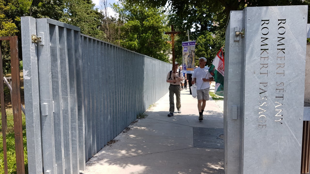 A nap végén a zarándokok koszorút helyeztek el Gencsapátiban Miszori Zoltán emléktáblájánál.