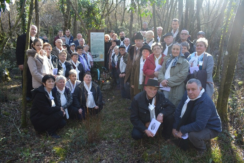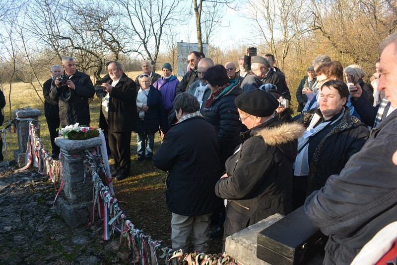 Itt, az erdei út mellett ma is látható kaverna bejáratánál a zarándokok koszorút helyeztek el.