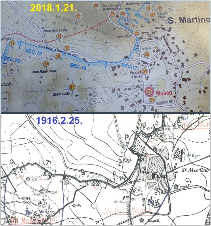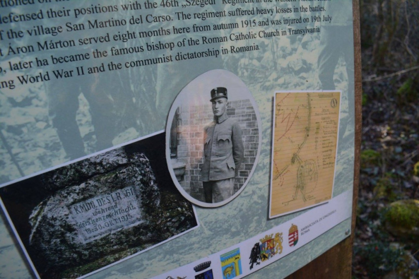 A következő nap programja az osztrák–magyar védelem H szakaszánál kezdődött, majd a temesvári 61. gyalogezred emlékét őrző emlékművet tekintették meg a zarándokok. Az emlékmű mellé 2014-ben kihelyezett négynyelvű – olasz, magyar, angol és szlovén – információs táblán feltüntették, hogy a 61. gyalogezredben harcolt Doberdónál nyolc hónapon át, és itt sebesült meg 1916. július 19-én Márton Áron, Erdély későbbi híres püspöke.