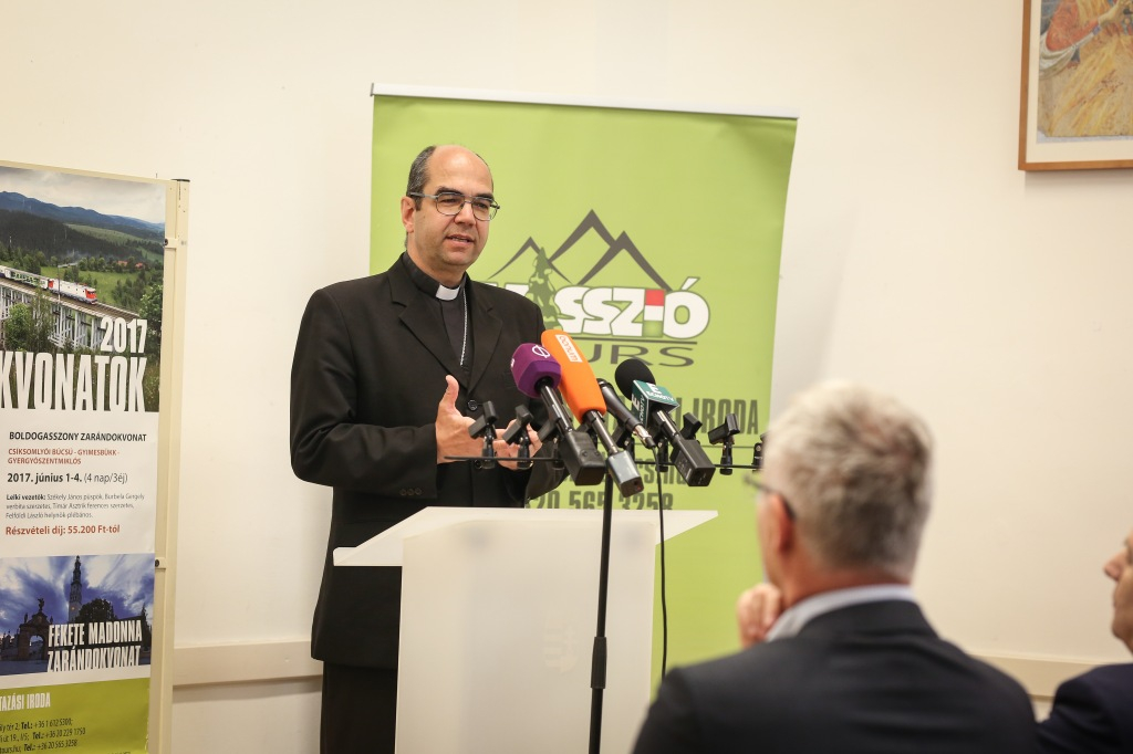 A sajtótájékoztatón elsőként Székely János esztergom-budapesti segédpüspök, a Boldogasszony-zarándokvonat lelkivezetője egy fiatalkori emlékét idézte fel, a Krakkóból Częstochowába tartó zarándoklatát. Mint elmondta, katarzist jelentett számára, hogy mennyien indultak imádságos lélekkel az útra, mennyien gyóntak meg, s hogy a lengyelek mekkora szeretete kísérte a magyar csoportot. Hozzátette: úgy érezte akkor, az egész ország egy szívvel dobogott. Kiemelte, Csíksomlyó a történelmi Magyarország lelki szíve, az országnak pedig megbékélésre és lelki megújulásra van szüksége, ehhez járulhatnak hozzá azok a zarándokok, akik pünkösdkor elmennek Csíksomlyóra.