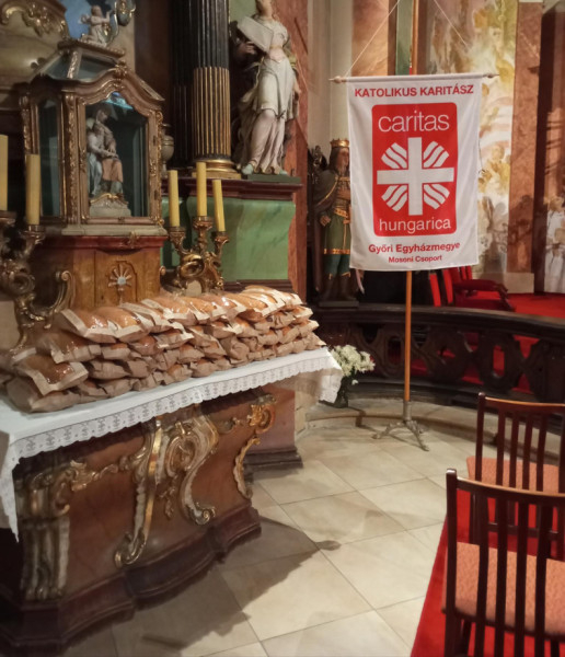 „Áldott légy Istenünk, Mennyei Atyánk, a mi reményünk és életünk forrása. Áldd meg a Mosoni Karitász Csoport zászlóját, amit eredményes szolgálatukért kaptak. A csoport tagjait segítsd kegyelmeddel és töltsd el szívüket Szentlelked örömével, hogy Szent Erzsébet példájából erőt merítve továbbra is szeretettel szolgálják a szegényeket, rászorulókat, bajbajutottakat. Krisztus a mi Urunk által. Amen”