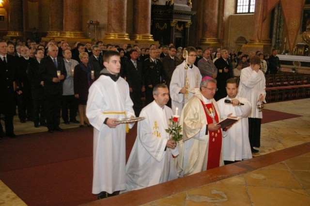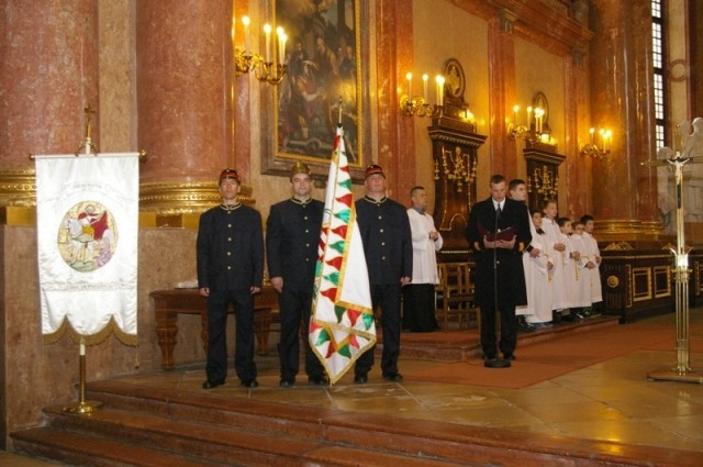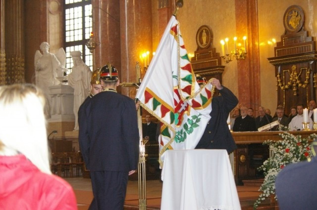 Szent Flórián, a tűzoltók védőszentje közelgő emléknapja alkalmából Veres András megyéspüspök áldotta meg a tűzoltók zászlaját, Puskás Tivadar polgármester pedig zászlószeget vert a tartórúdba. A szertartáson felidézték a lobogó hányatott sorsát is. A megáldott zászlót a Szombathelyi Hivatásos Tűzoltó-parancsnokságnak adományozták.