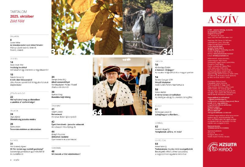 A magazinból képet kaphatunk arról, hogyan valósul meg az ökolelkiség a jezsuiták háza táján; miként jelenik meg a teremtésvédelem a hazai oktatásban; és arról is, hogyan nevelhetjük arra gyermekeinket, hogy harmonikus kapcsolatot ápoljanak a természettel.