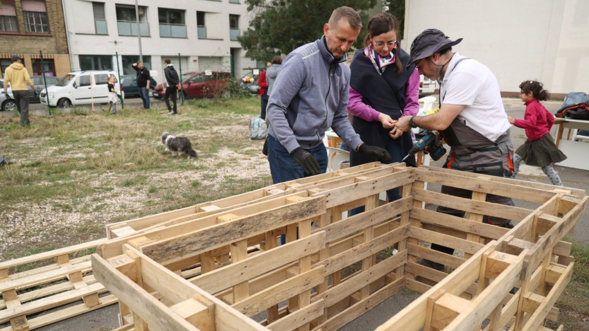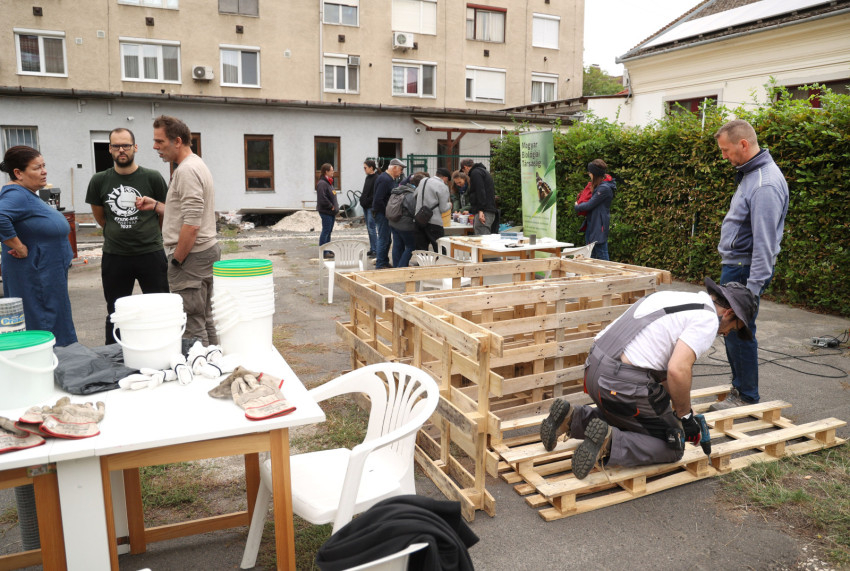 A közösségi komposztálót raklapokból építették, hogy ne csak a templomba járók, hanem a környéken élők is használhassák, az ott termelődő komposztot pedig helyben felhasználják.