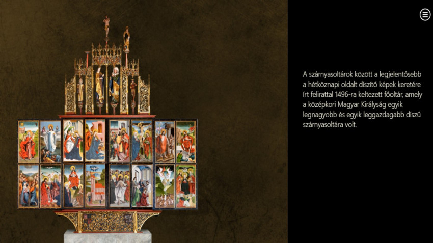 A kisszebeni szárnyas oltár honlapján megismerhetjük a remekmű művészettörténeti hátterét, Kisszebent, a kiállított főoltár mostani helyszínét a Budavári Palotában, a szárnyasoltárok felépítését és jelentőségét. Betekinthetünk az oltár restaurálásának folyamatába, bele is zoomolhatunk az oltárba, elolvashatjuk egy jezsuita szerzetes gondolatait a liturgikus színfalról, és megérthetjük, hogy hitvallásunk egyes sorai miként függnek össze az oltárképpel. A pedagógusok feladatsorokat találhatnak különböző korosztályok számára akár történelem, akár vizuális kultúra tantárgyakból, de múzeumpedadógiai online foglalkozásban is lehet része a látogatóknak.