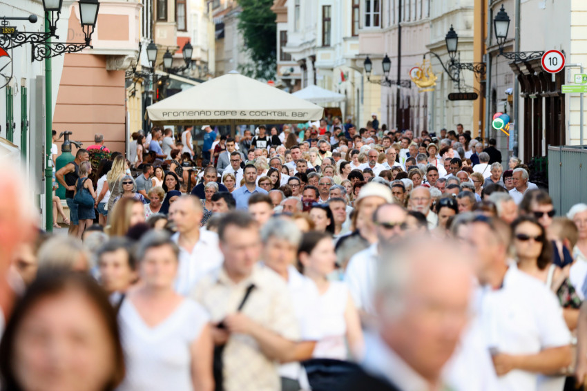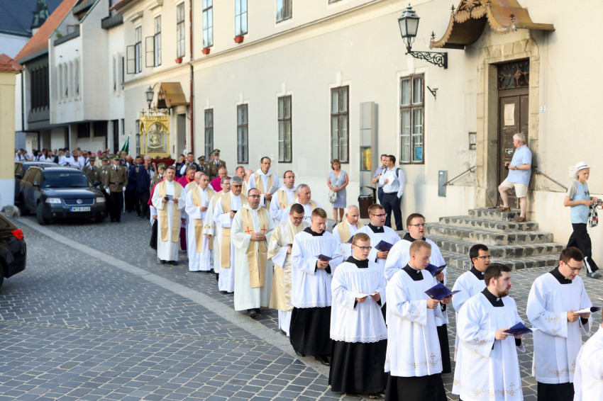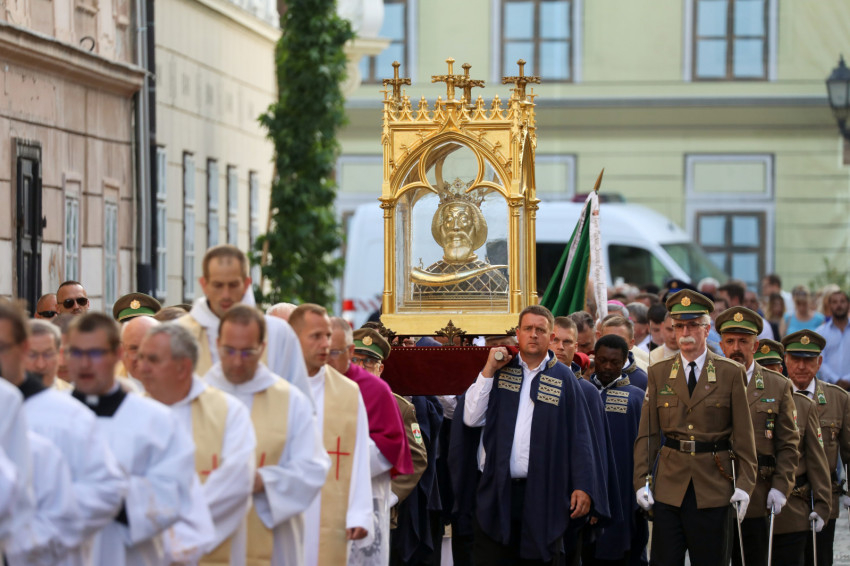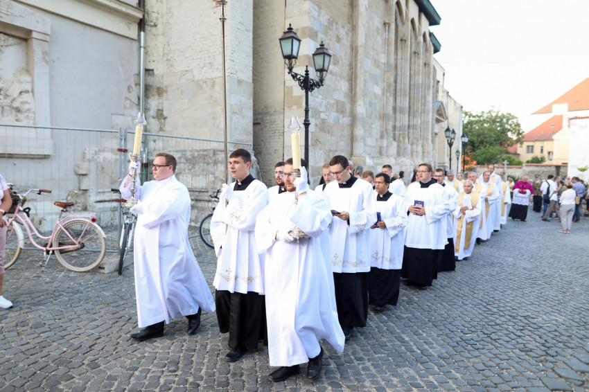 A Káptalandombról indult a körmenet a Bécsi kapu téren át. A városközpontban is mindenki tisztelettel vette körül a szent ereklyéjét és az ünneplő híveket.