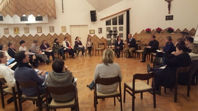 A szentmisét követően Kató Csaba állandó diakónus és felesége, Kató-Bellavics Ágota vezetésével folytatódott a találkozó. A péntek esti blokkban a résztvevők mintegy tükörként maguk elé állították a jó mentor képét, megállapítva, milyen tulajdonságokkal, képességekkel, hozzáállással rendelkezik, majd elgondolkodtak azon, hogy személyesen hol tartanak e fejlődési folyamatban. A feladathoz hozzá tartozott, hogy célt is kitűzzenek magunk elé, amely az egyéni növekedés első lépése. Az estét közös imádság majd kötetlen együttlét zárta, amelyben lehetőség volt a személyes találkozásokra, beszélgetésekre.