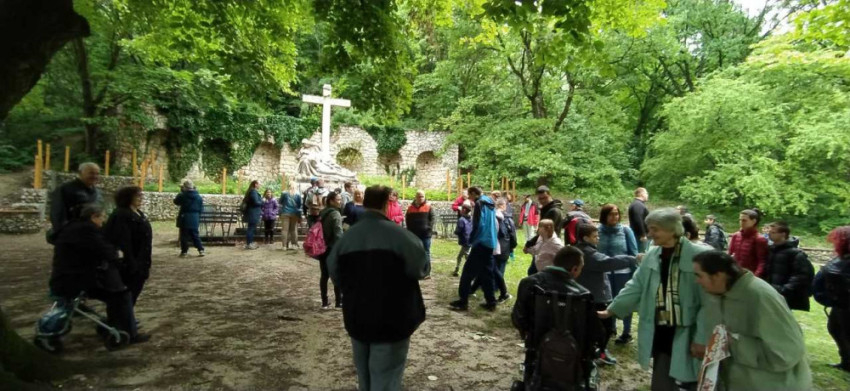 A liturgia után a fiatalok és kísérőik a Gyűdi Szűzanya,Tenkes-hegy Fehér Asszonya szobra előtt imádkoztak és kérték, hogy terjessze ki életük fölé ezüstös palástját.