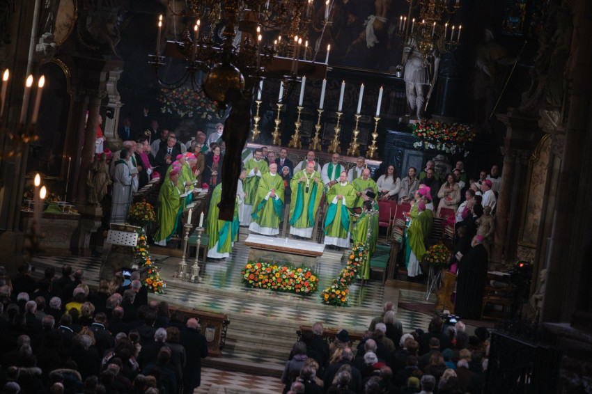 Több mint négyezren vettek részt a liturgián, Schönborn érsekkel ünnepeltek az osztrák püspöki konferencia tagjai, szerzetesrendek elöljárói, az állam és tizenhat testvéregyház képviselői.