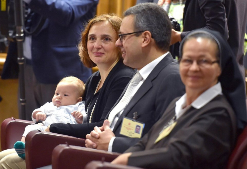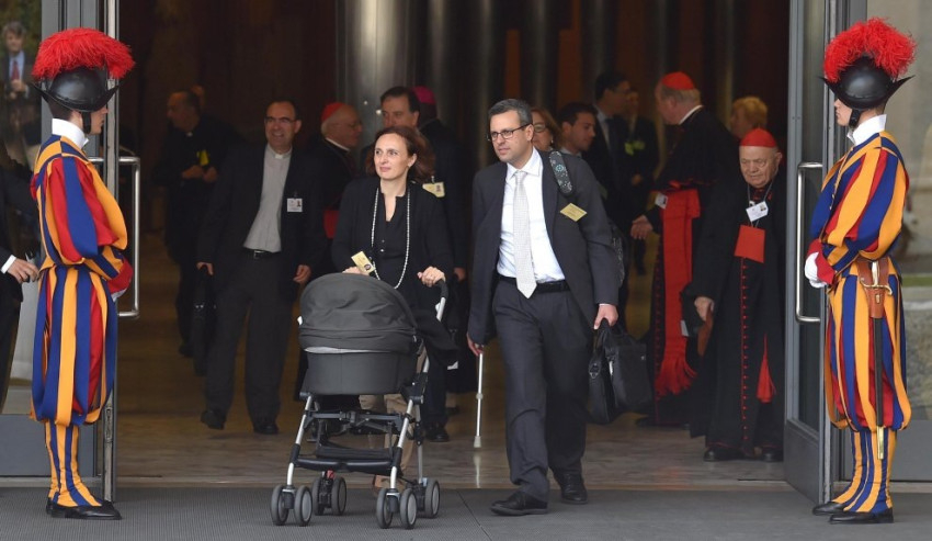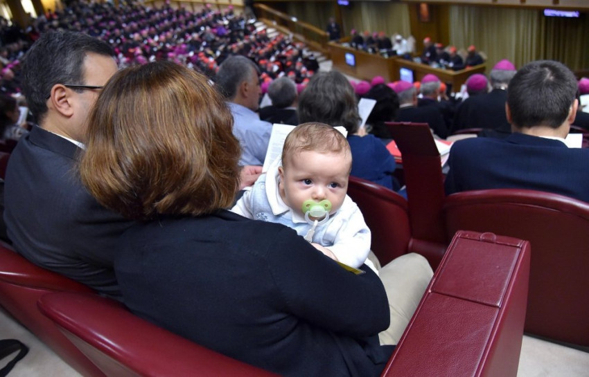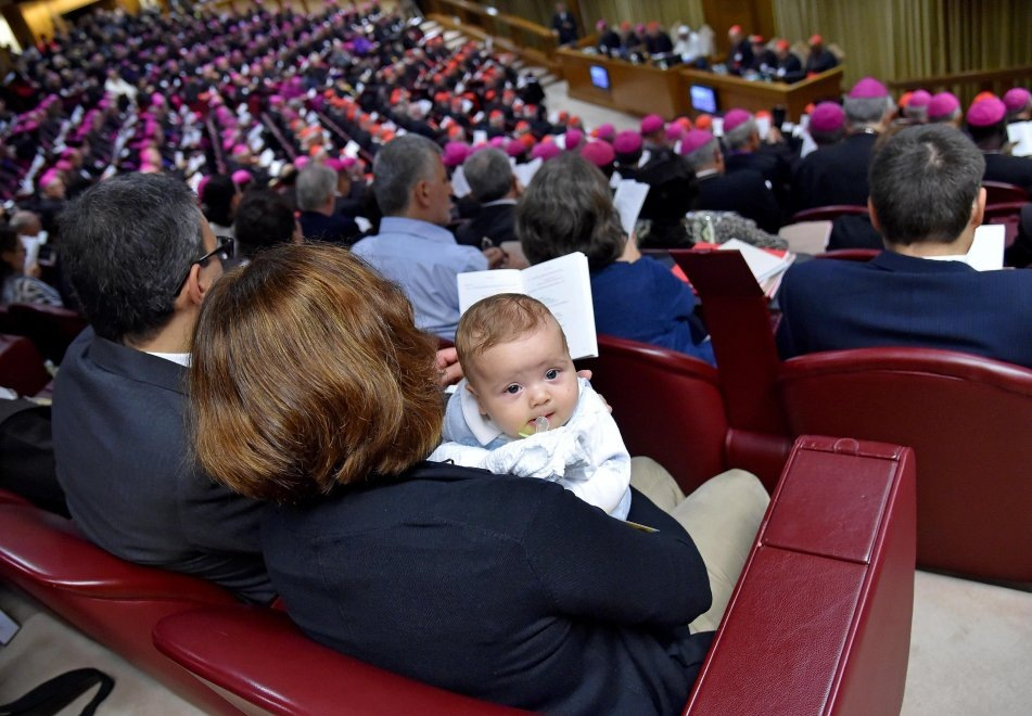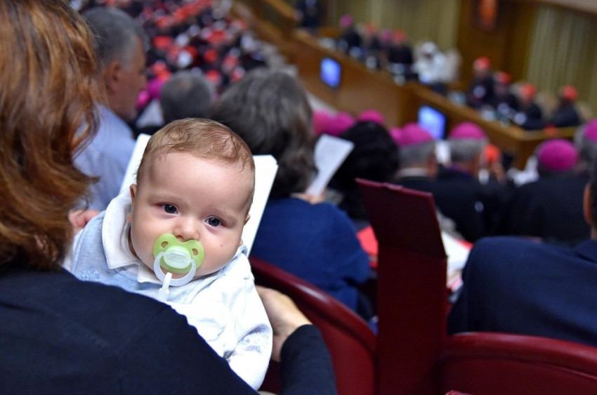 Vasárnap a bíborosok, püspökök és a házaspárok mellett egy kisgyermekes család is érkezett babakocsit tolva a szinódusra. A kocsit kívül hagyták, Davide édesanyja karjában töltötte az ülés idejét: bejárta a világot a fotó, amelyen cumival a szájában kíváncsian nézelődik, miközben a kép hátterében ott van Ferenc pápa a püspökökkel.